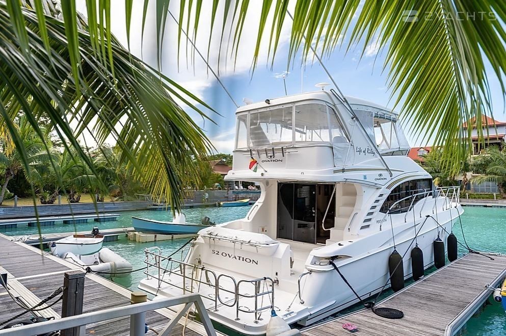 3-cabin motor yacht Silverton Ovation 52 - Life of Riley was built in 2010, and it is docked in Eden Island Marina, Seychelles.