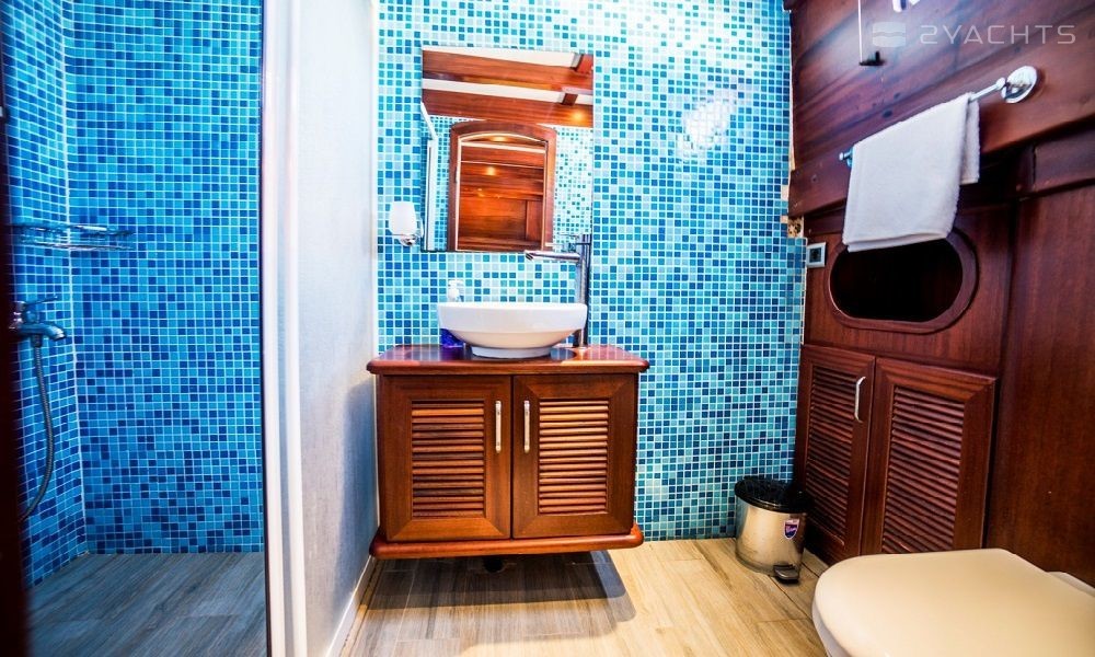 Freedom can accommodate 12 guests in 6 cabins. A shower and 6 toilets are available on board.