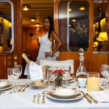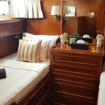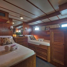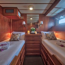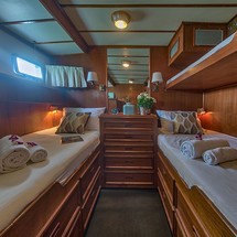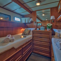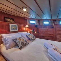 L'Orientale can accommodate up to 7 people in 2 double cabins and 1 triple cabin. Pillows and blankets are included in the price.