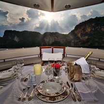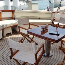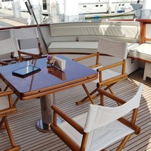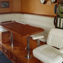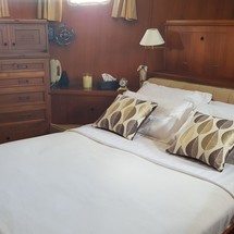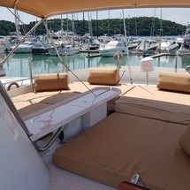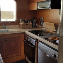 Boat equipment features radar, generator, salon gps plotter, bbq and bimini. It also boasts a flat screen tv, heating, air conditioning, washing machine and audio system. The fully-equipped galley includes a microwave, dishwasher, freezer, coffee machine and oven.