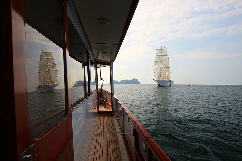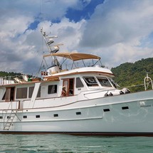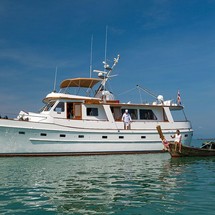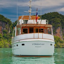 3-cabin motor yacht Cheoy Lee 66 - L'Orientale was built in 1978, (renovated in 2018,) and it is docked in Ao Po Grand Marina, Thailand.