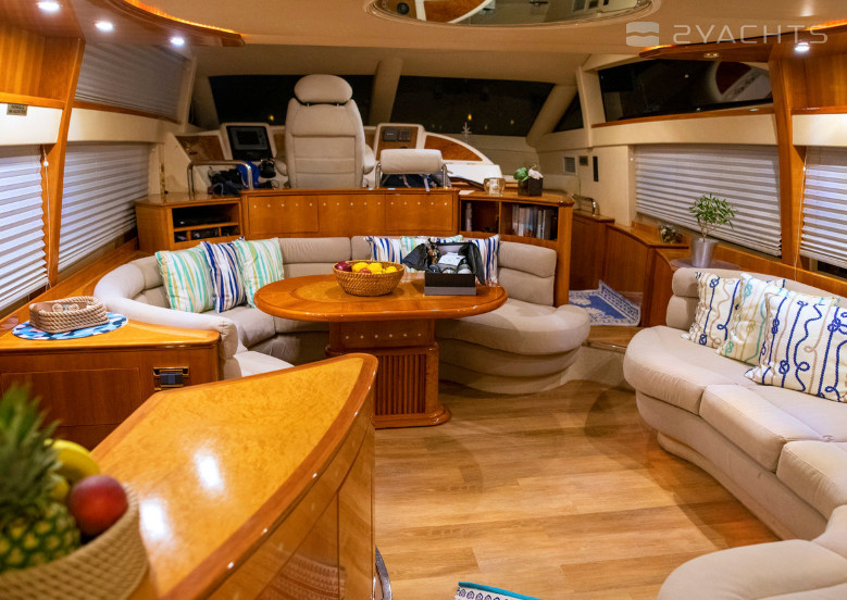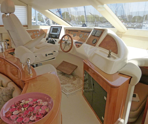 3-cabin motor yacht Azimut 58 - Harrylou was built in 2001, (renovated in 2017,) and it is docked in Marina Alimos, Greece.