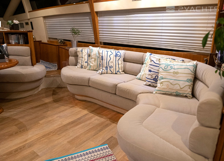 Boat equipment features radar, generator, salon gps plotter, bimini and bow thruster. It also boasts a flat screen tv, air conditioning, an audio system, dvd player and outside speakers. The fully-equipped galley includes a microwave, ice maker, coffee machine, oven and cooker.
