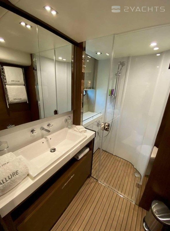 Motor yacht Allure offers 4 toilets with a shower.