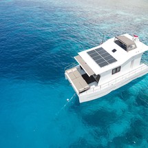 1-cabin power catamaran Custom Built Architect - Nyaman was built in 2019, and it is docked in Serangan bay, Indonesia.