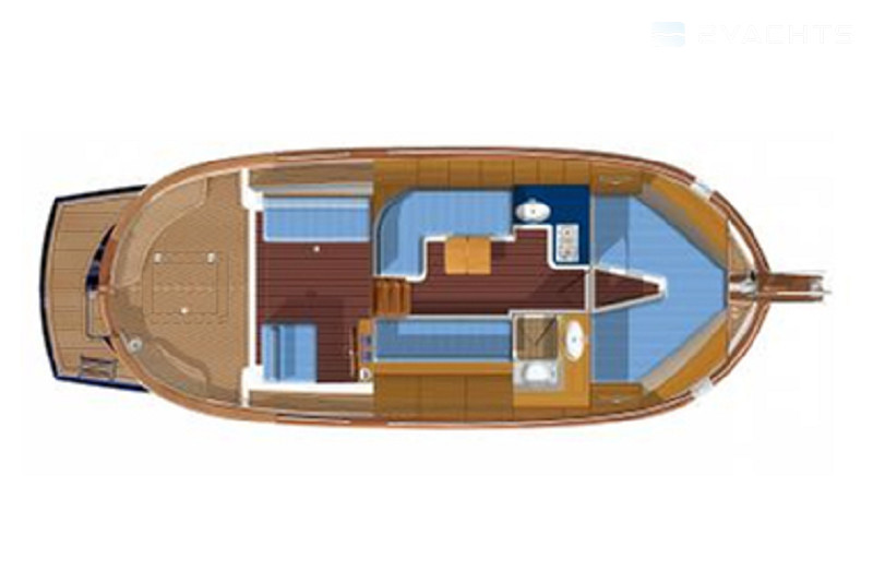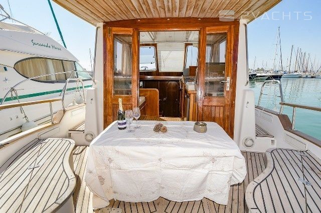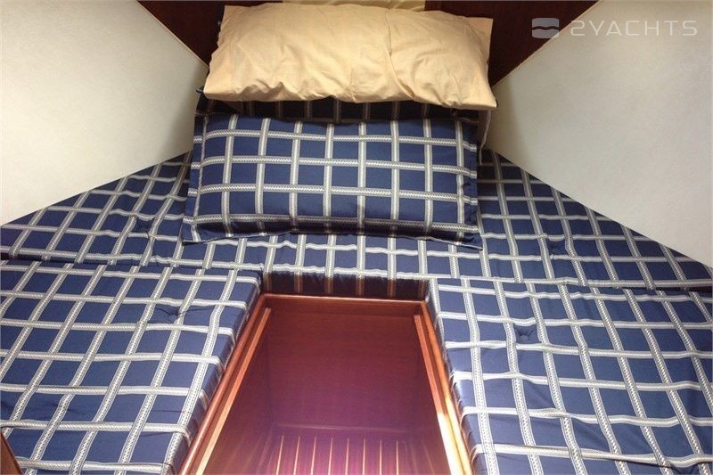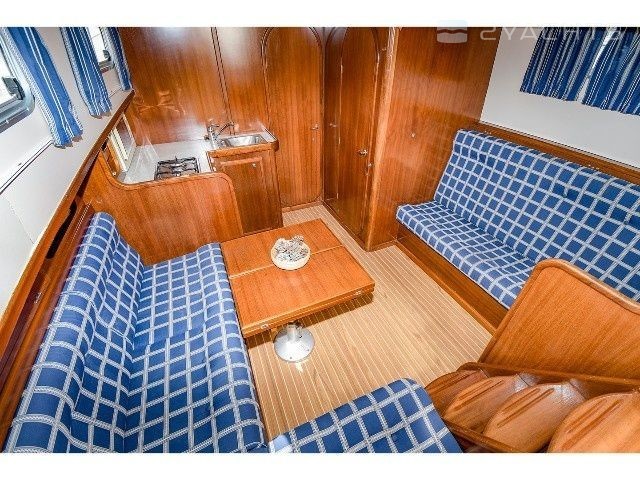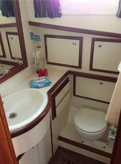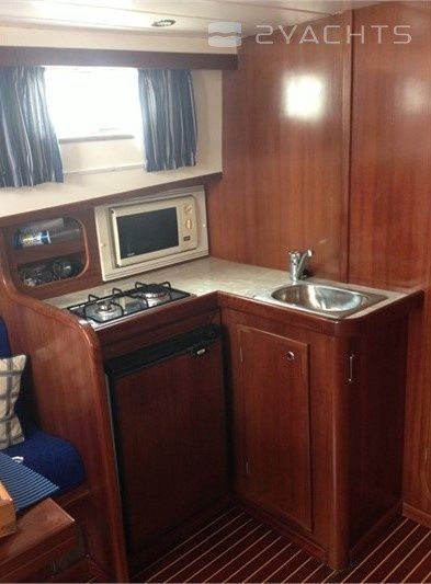 Boat equipment features electric winches, salon gps plotter, bimini and bow thruster. It also boasts an an audio system, outside speakers and inside speakers. The fully-equipped galley includes a microwave, freezer, oven, cooker and sink.
