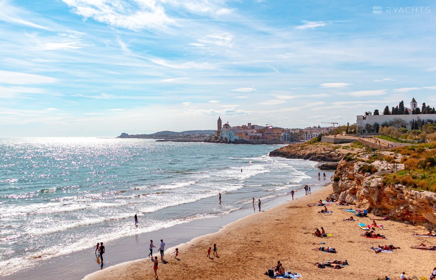 2-cabin motor yacht Menorquin 100 - Mar de Coral was built in 2001, and it is docked in Port de Sitges - Aiguadolç, Spain.