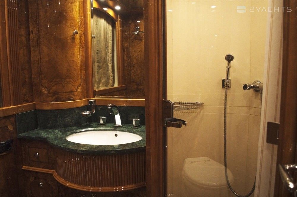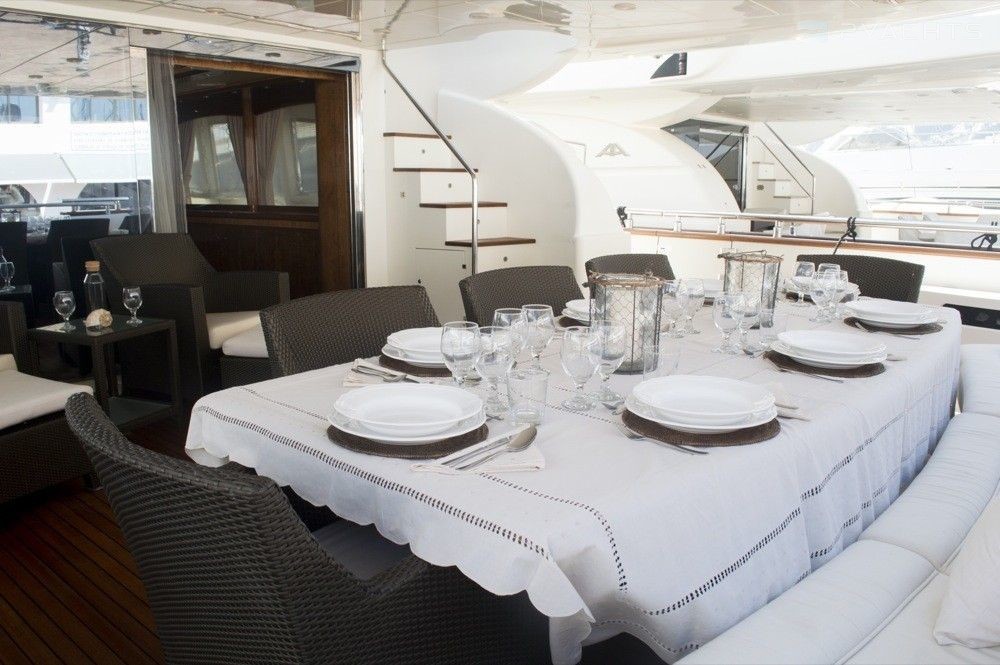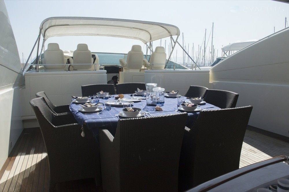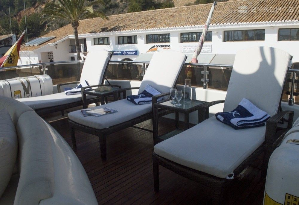 Boat equipment features radar, generator, salon gps plotter, bbq and bimini. It also boasts a flat screen tv, heating, air conditioning, an audio system and dvd player. The fully-equipped galley includes a microwave, dishwasher, ice maker, freezer and coffee machine.
