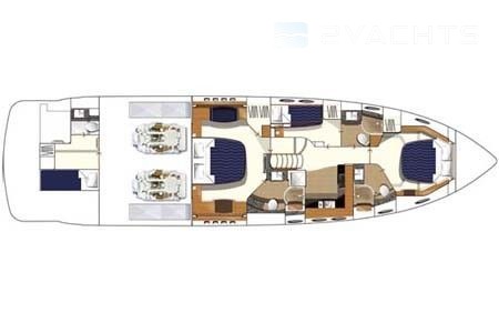 Boat equipment features radar, generator, salon gps plotter, bbq and bimini. It also boasts a flat screen tv, air conditioning, an audio system, dvd player and outside speakers. The fully-equipped galley includes a freezer, coffee machine, oven, cooker and sink.