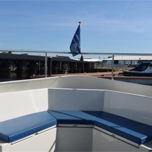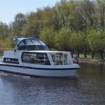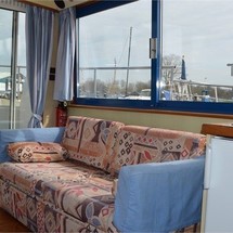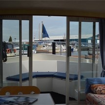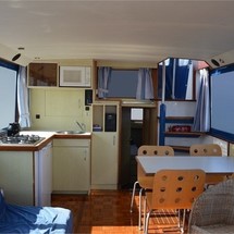This houseboat is equipped with bimini and bow thruster. In chilly weather, guests will benefit from heating. an audio system, flybridge and inside speakers are also available.