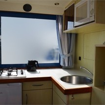 A well-equipped galley with cooker, sink and kitchen utensils is prepared to facilitate cooking. There is also a coffee machine on board.