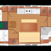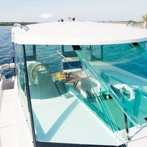 Boat equipment features radar, bimini and bow thruster. It also boasts a flat screen tv, heating, an audio system, dvd player and outside speakers. The fully-equipped galley includes a cooker, sink and kitchen utensils.