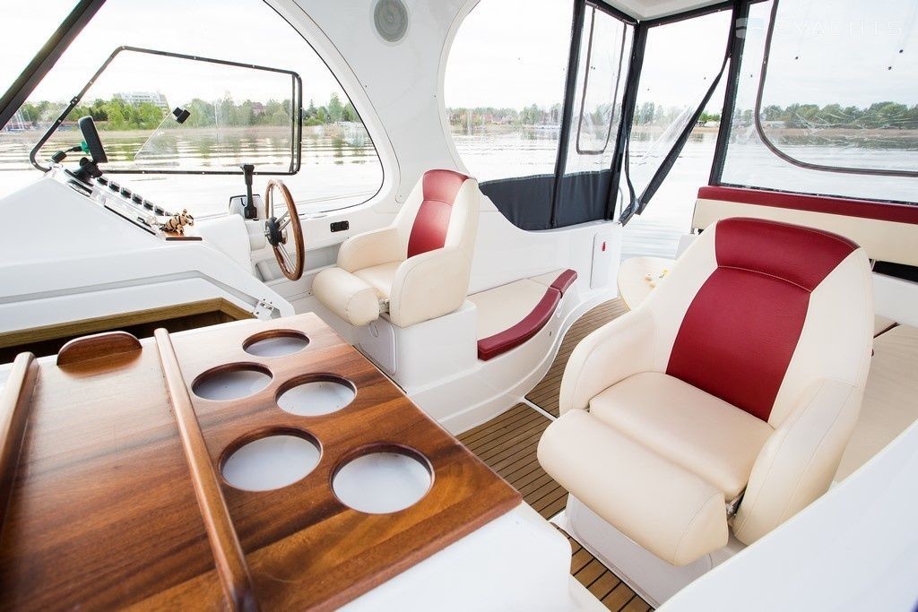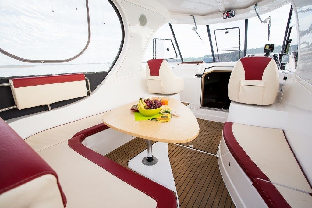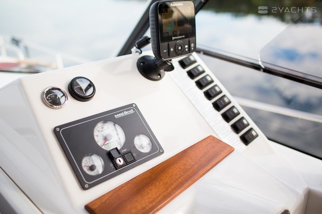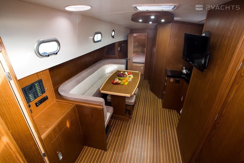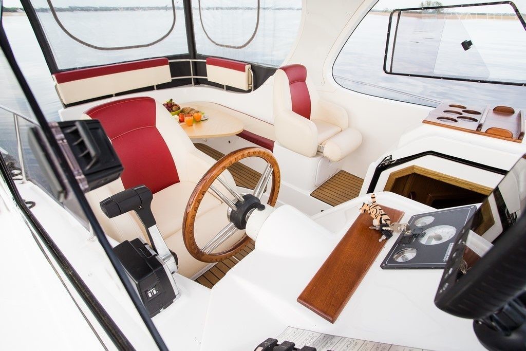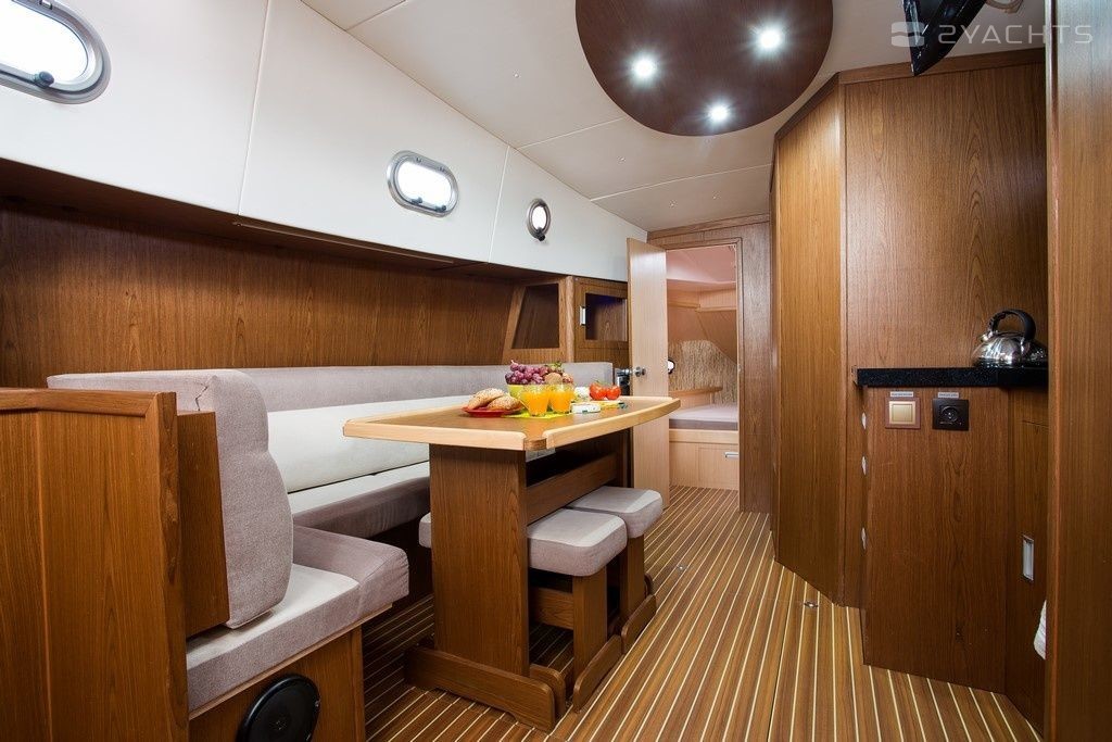 Boat equipment features generator, bbq, bimini and bow thruster. It also boasts a flat screen tv, heating, an audio system, outside speakers and inside speakers. The fully-equipped galley includes a cooker, sink and kitchen utensils.