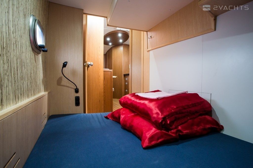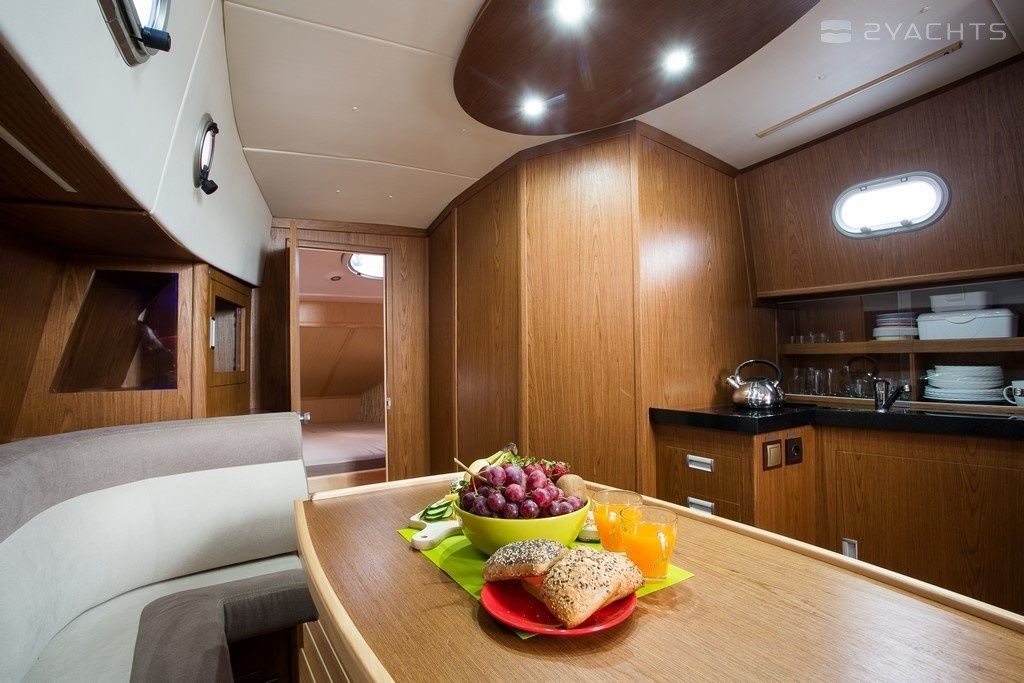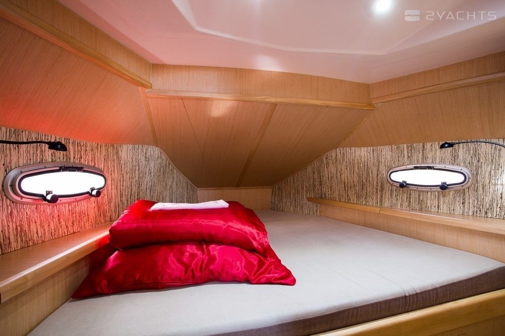Illuminatus can accommodate up to 7 people in 3 double cabins and a saloon with 1 extra bed. Pillows and blankets are included in the price.