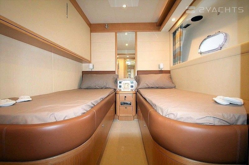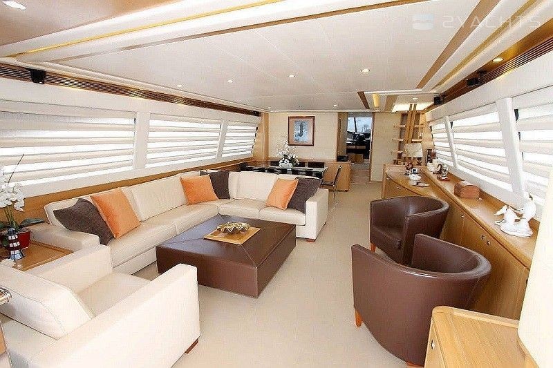 Boat equipment features radar, generator, salon gps plotter, bbq and bimini. It also boasts a flat screen tv, heating, air conditioning, an audio system and dvd player. The fully-equipped galley includes a microwave, ice maker, freezer, coffee machine and oven.
