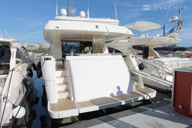 4-cabin motor yacht Ferretti 830 - Onyx was built in 2008, (renovated in 2018,) and it is docked in Vieux Port de Cannes, France.