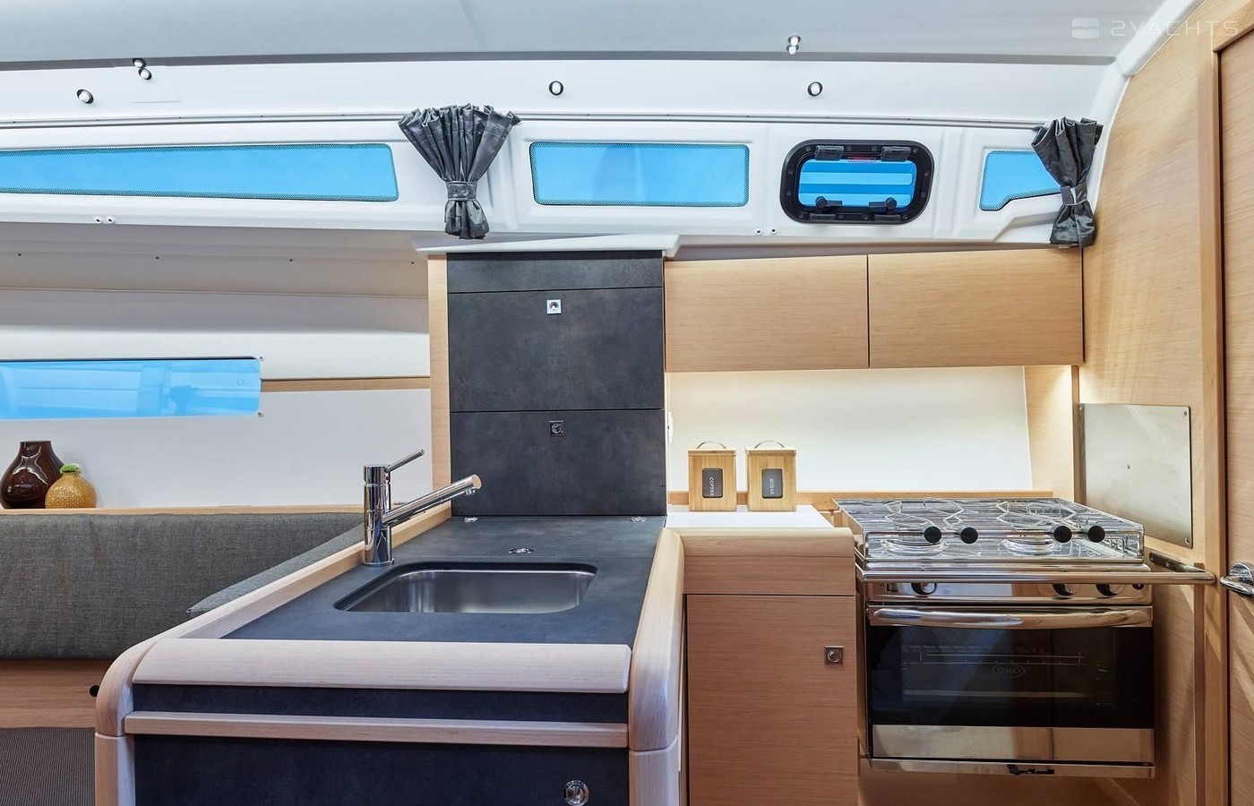 Boat equipment features classical mainsail, bimini and outside gps plotter. It also boasts an an audio system, outside speakers and inside speakers. The fully-equipped galley includes an oven, cooker, sink and kitchen utensils.