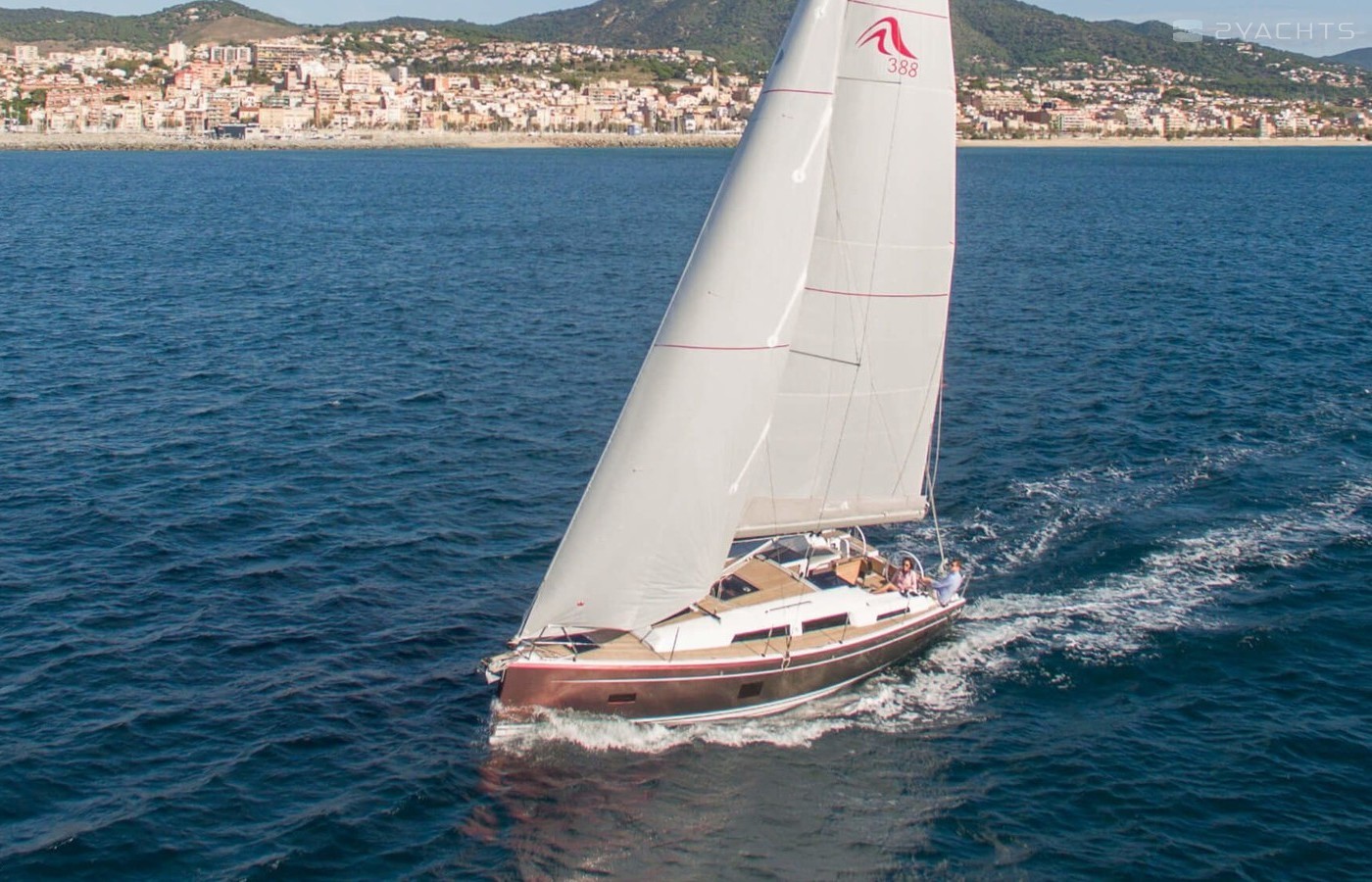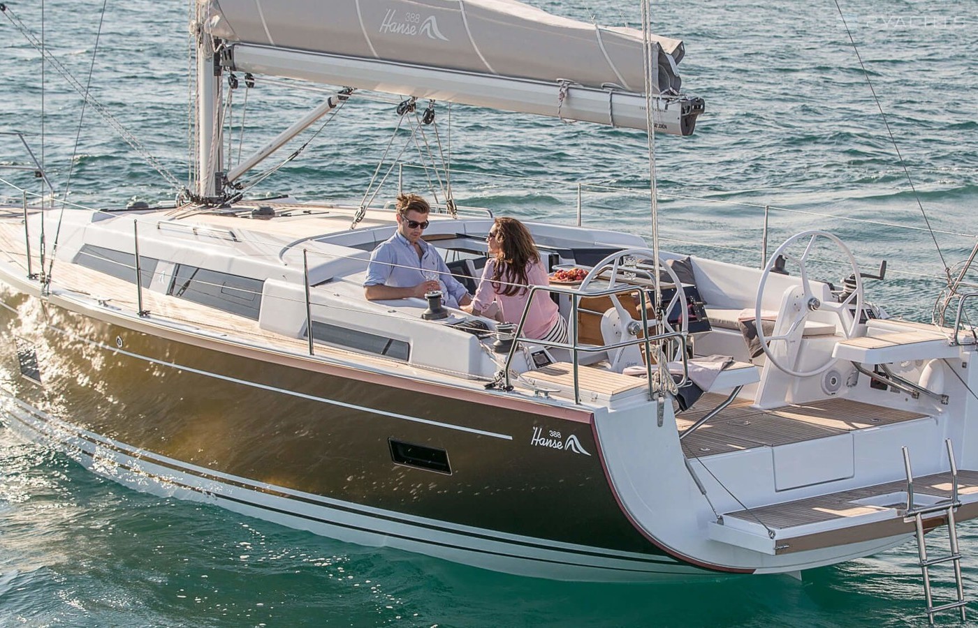 3-cabin sailing yacht Hanse 388 - Vasilia was built in 2022, and it is docked in Olympic Marina, Greece.