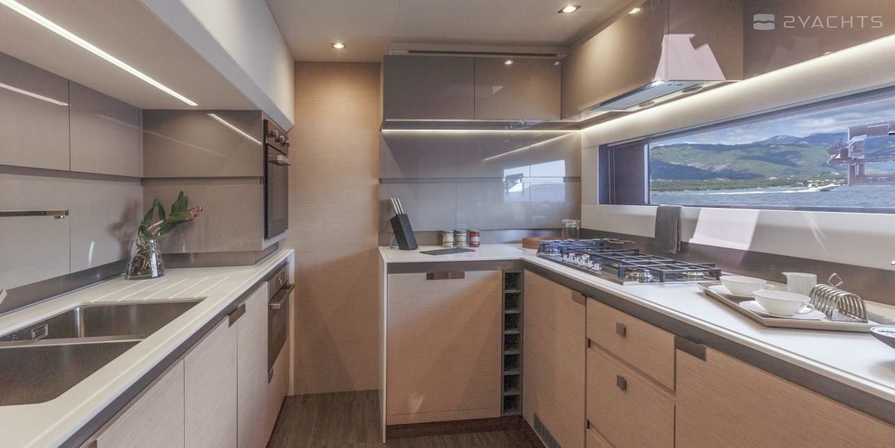 This catamaran is operated by the charter company Fyly Luxury.