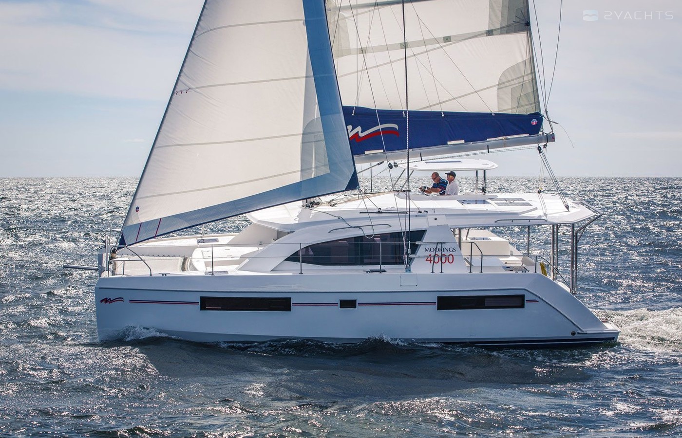 This catamaran is operated by the charter company The Moorings.