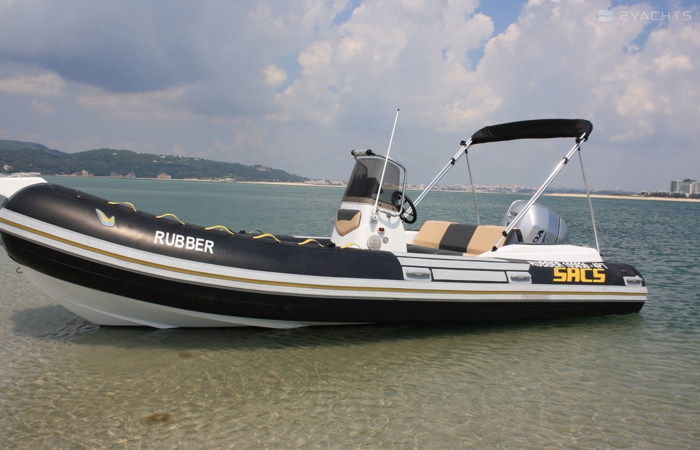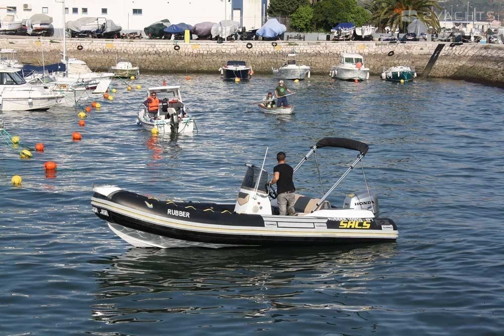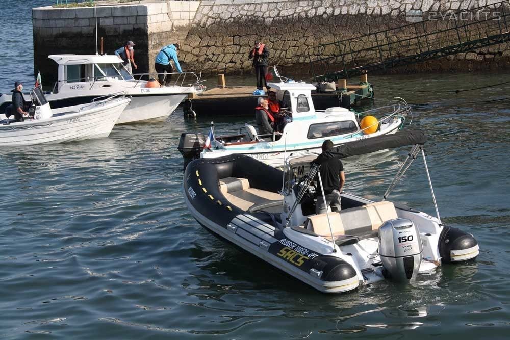 This 2002 SACS S590 - Rubber is suitable for 10 people. It is docked in Doca das Fontainhas, Portugal.