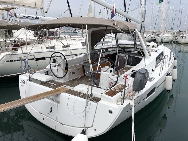 3-cabin sailing yacht Beneteau Oceanis 41.1 - Buga was built in 2018, and it is docked in D-Marin Marina Dalmacija, Croatia.