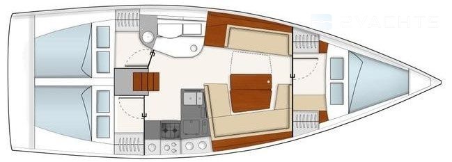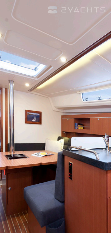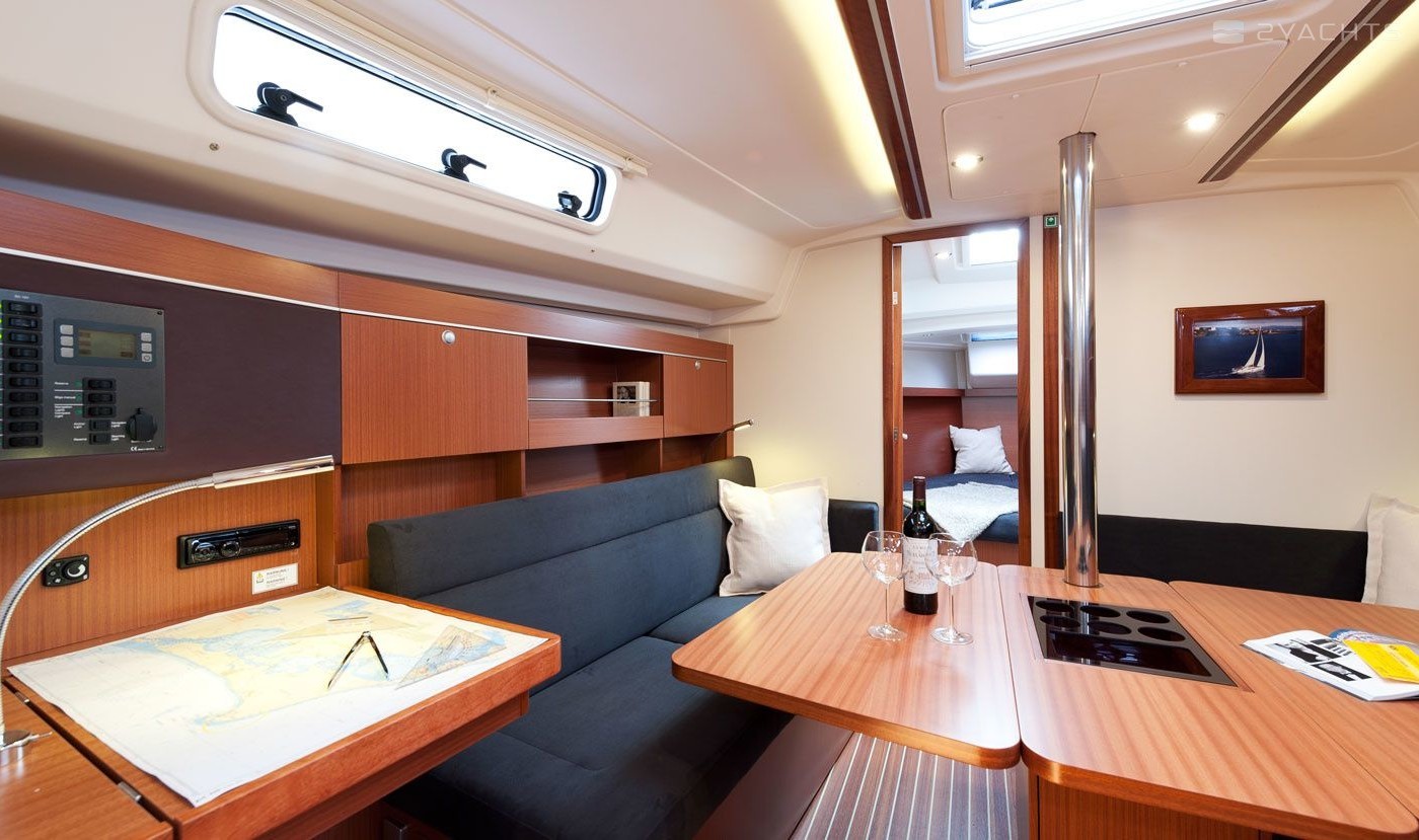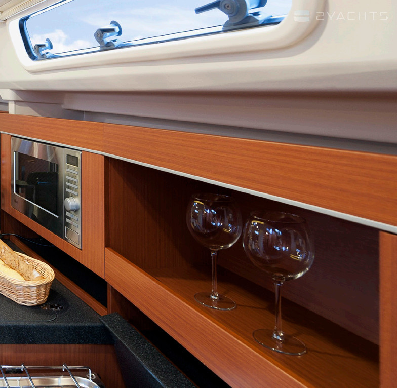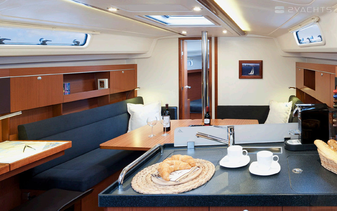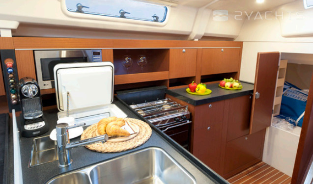 Boat equipment features classical mainsail, electric winches, bimini and outside gps plotter. It also boasts an an audio system, outside speakers, stand up paddle and inside speakers. The fully-equipped galley includes an oven, cooker, sink and kitchen utensils.
