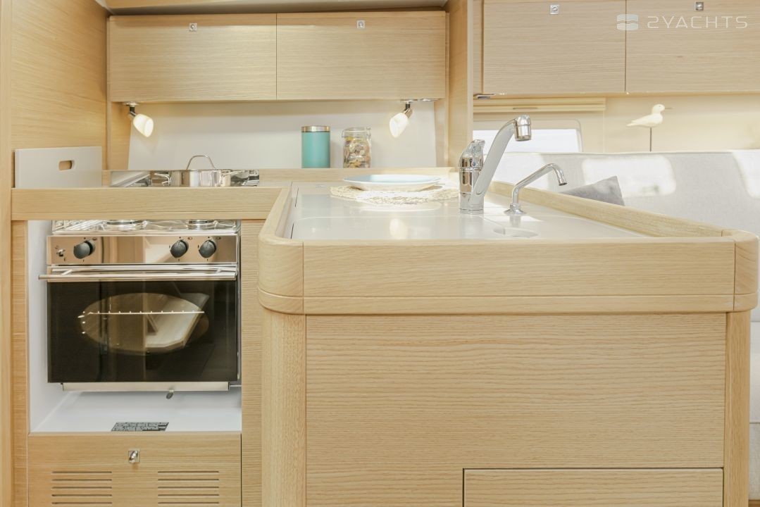Boat equipment features classical mainsail, electric winches, bimini and outside gps plotter. It also boasts an an audio system, outside speakers and inside speakers. The fully-equipped galley includes an oven, cooker, sink and kitchen utensils.