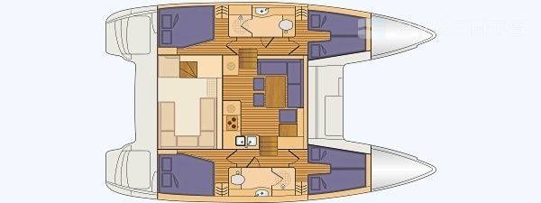 Boat equipment features classical mainsail, bimini and outside gps plotter. It also boasts a heating, an audio system and inside speakers. The fully-equipped galley includes an oven, cooker, sink and kitchen utensils.