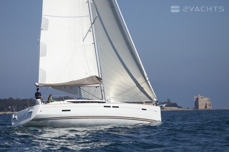 4-cabin sailing yacht Jeanneau Sun Odyssey 439 - Hair was built in 2014, and it is docked in Marina de Uturoa, French Polynesia.