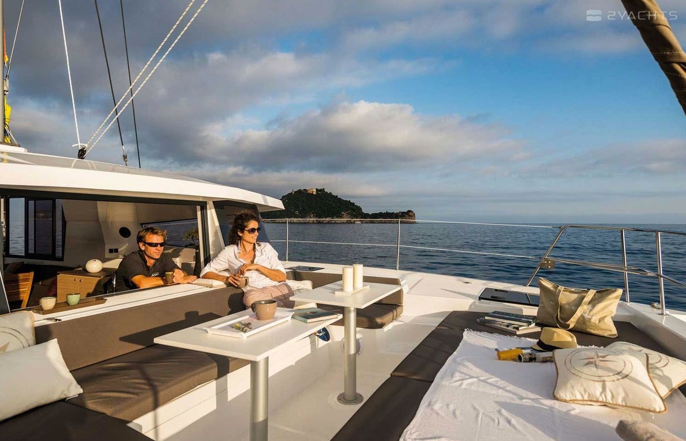 This catamaran is operated by the charter company Dream Yacht Charter.