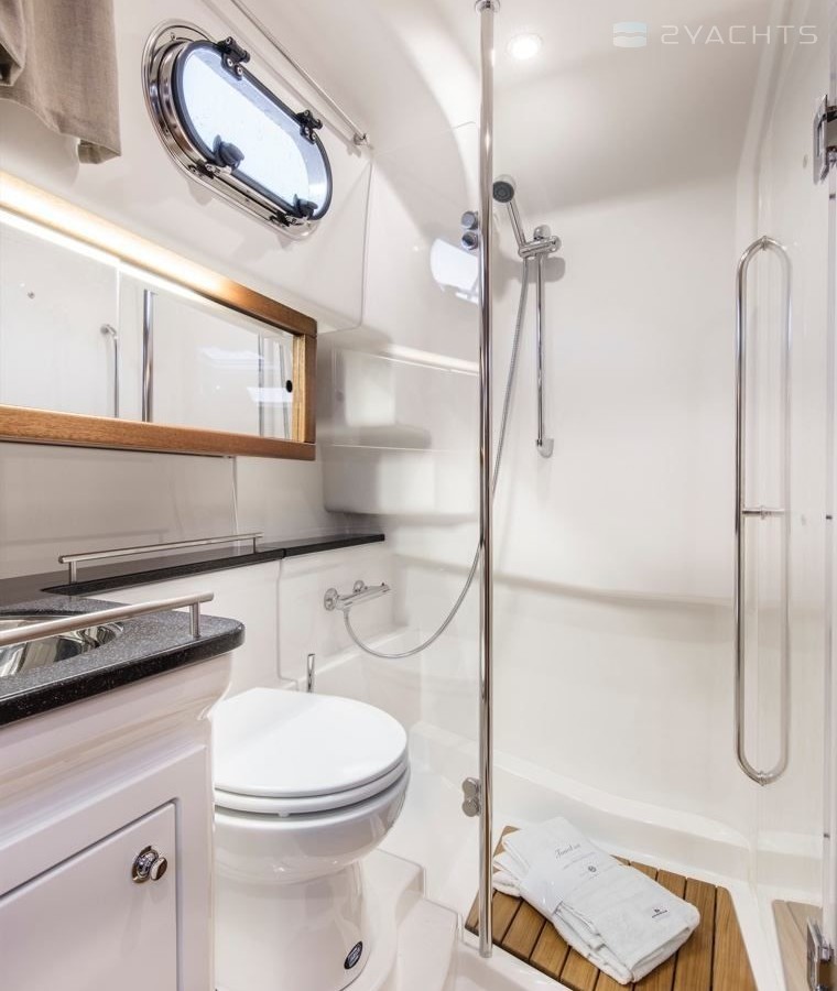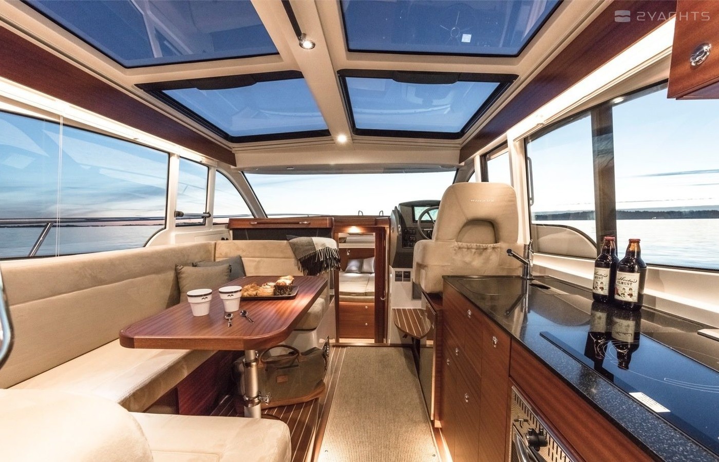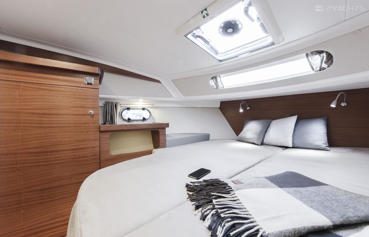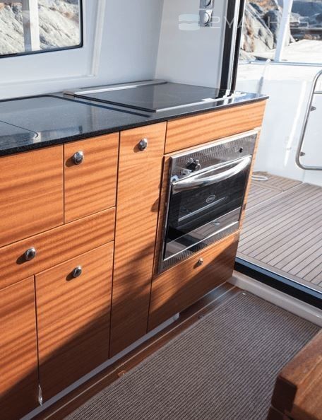 Boat equipment features salon gps plotter, bimini and bow thruster. It also boasts a flat screen tv, an audio system, outside speakers and inside speakers. The fully-equipped galley includes a freezer, oven, cooker, sink and kitchen utensils.