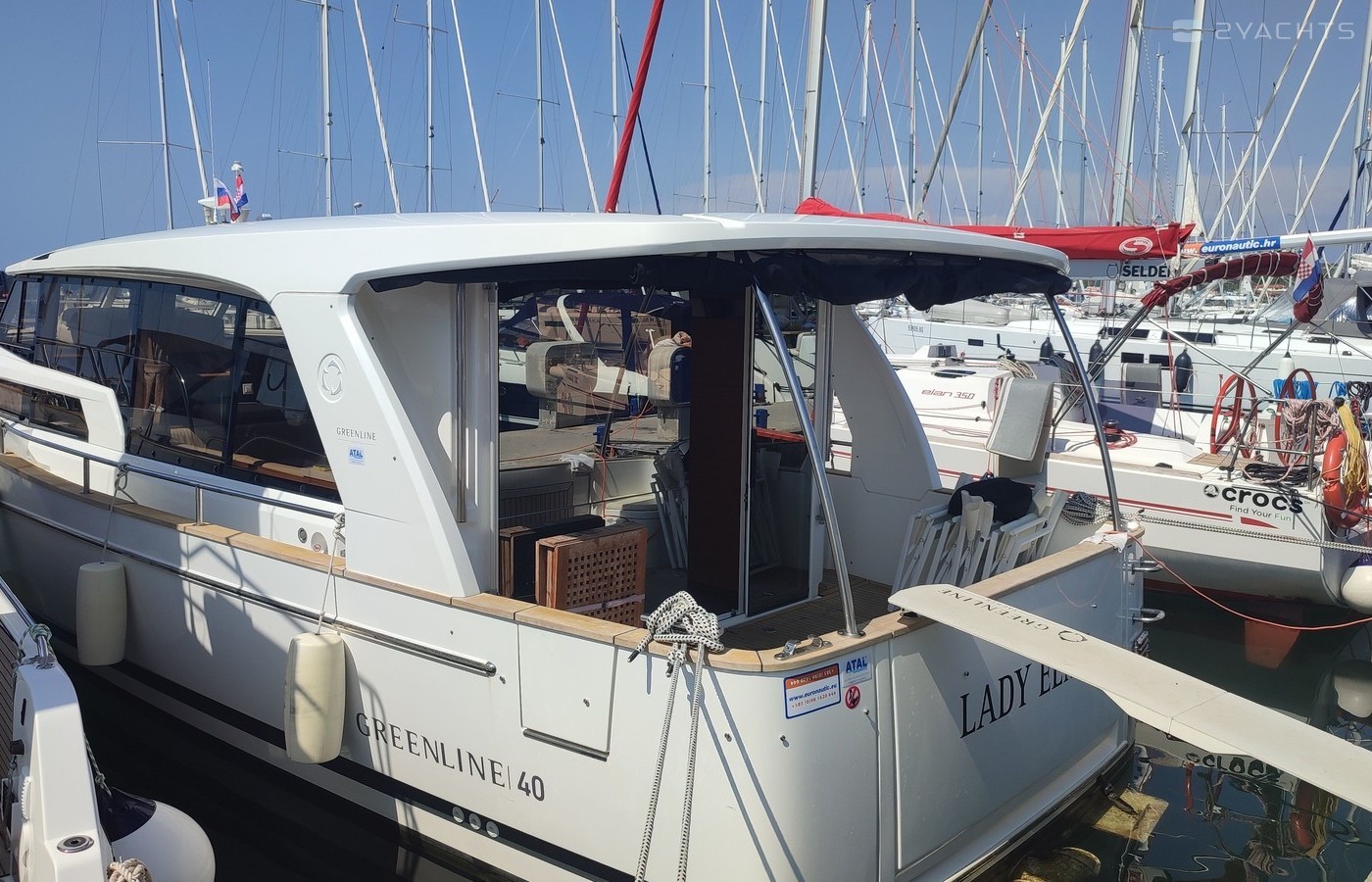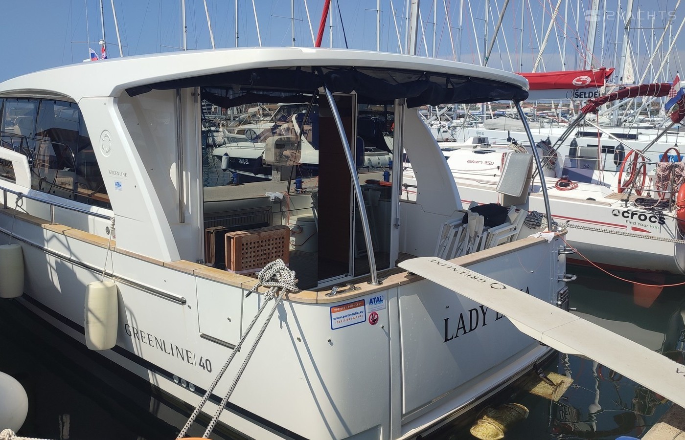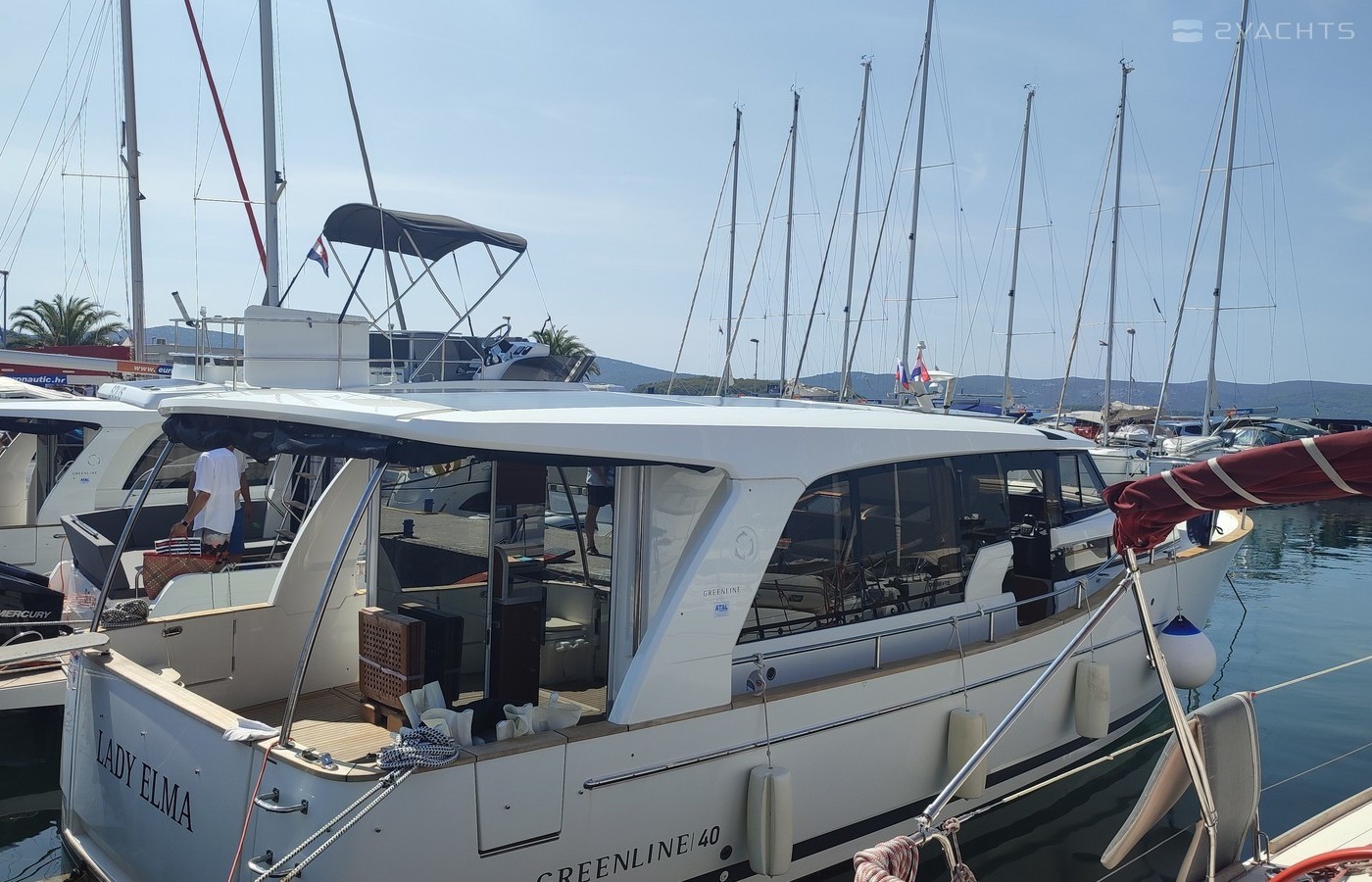 2-cabin motor yacht Greenline 40 - Lady Elma was built in 2022, and it is docked in Marina Kornati, Croatia.