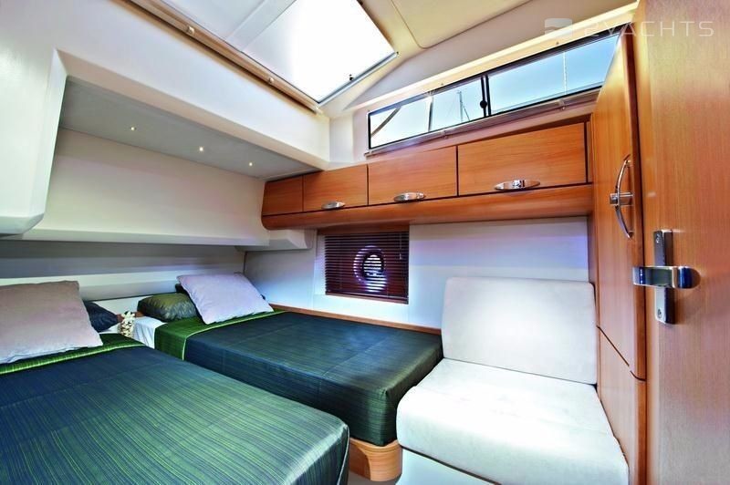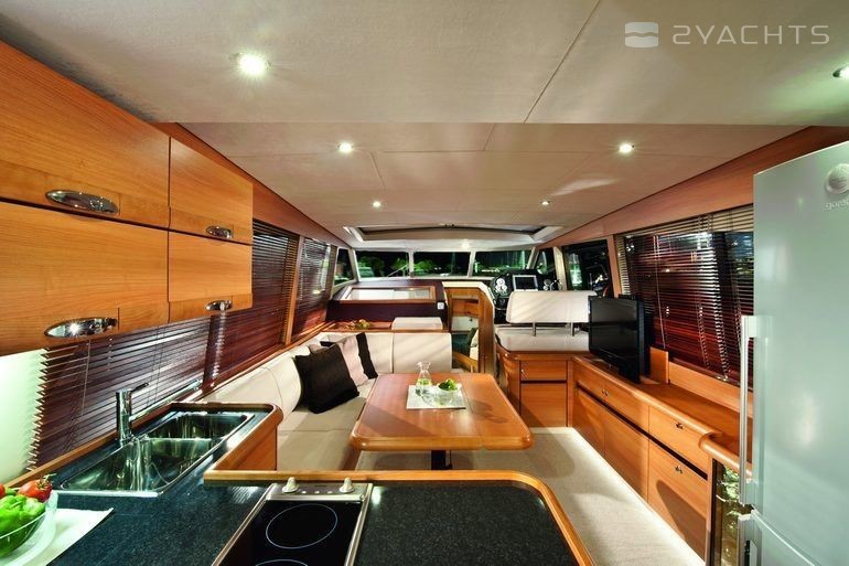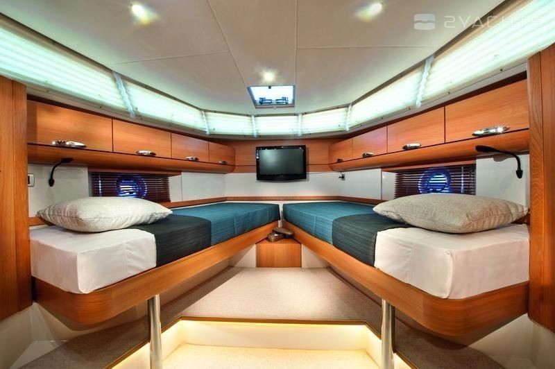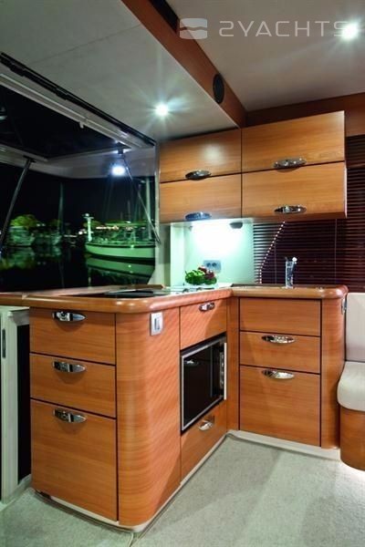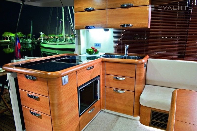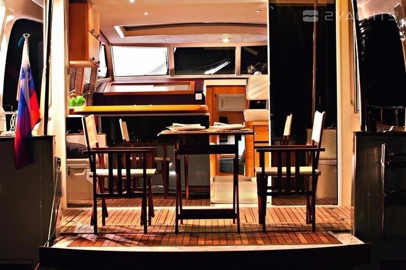 Boat equipment features solar panels, bimini and bow thruster. It also boasts a flat screen tv, heating, an audio system, outside speakers and inside speakers. The fully-equipped galley includes a microwave, freezer, oven, cooker and sink.