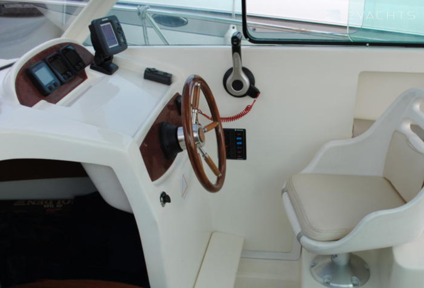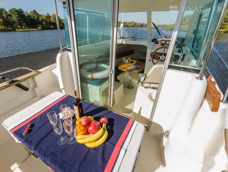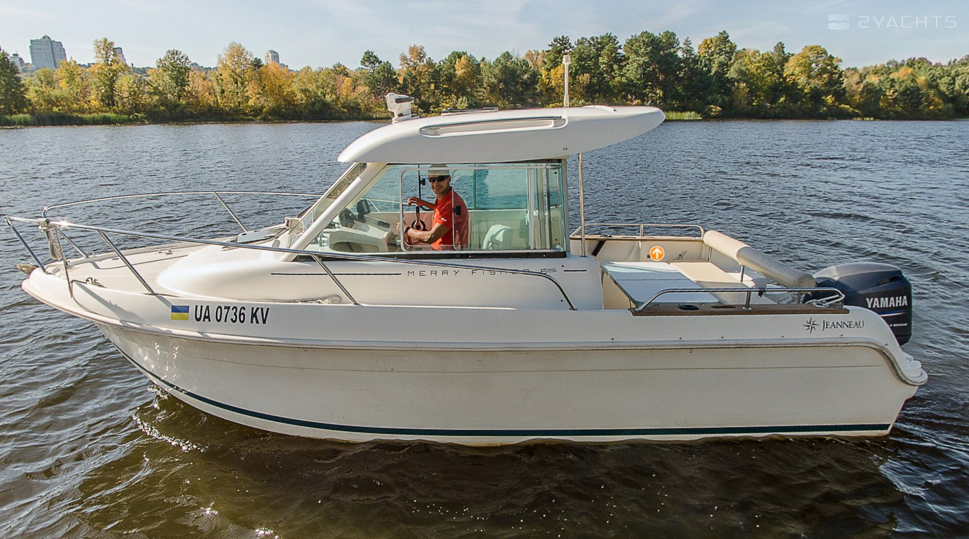 This 2015 Jeanneau Merry Fisher 625 - Zheno is suitable for 5 people. It is docked in Yacht Club Mayachok, Ukraine.