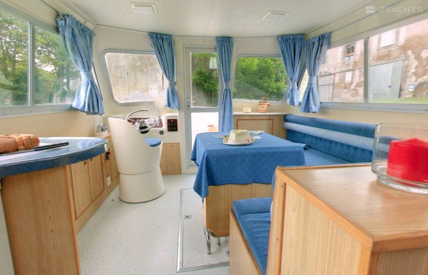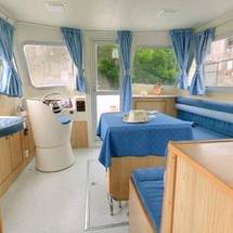 This houseboat is equipped with bow thruster. In chilly weather, guests will benefit from heating. an audio system, flybridge and inside speakers are also available.