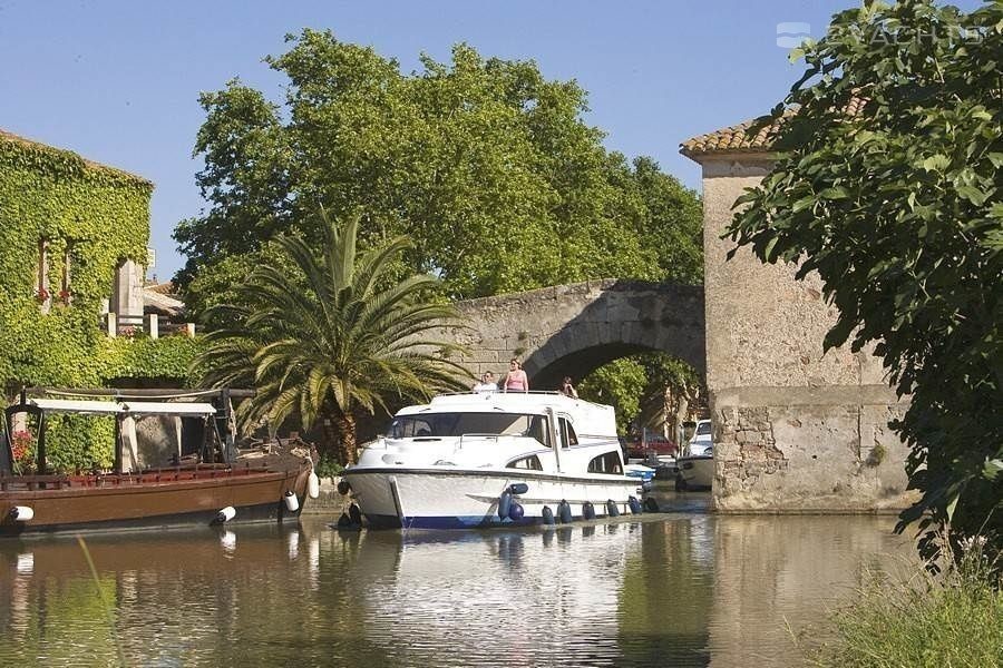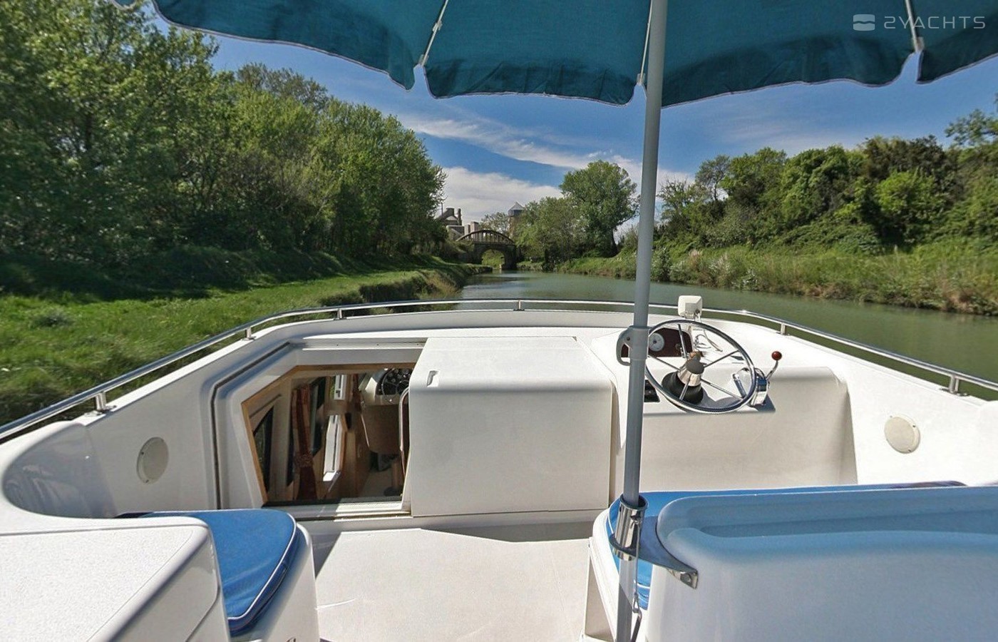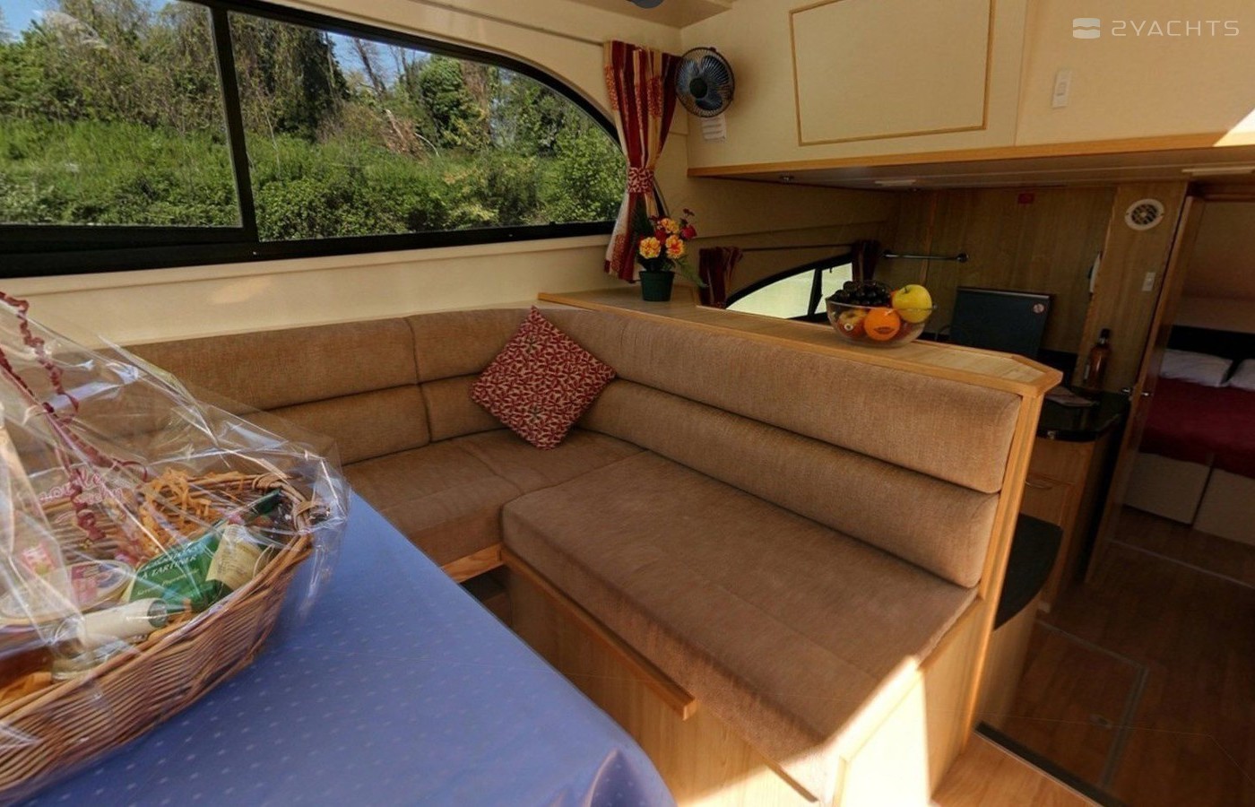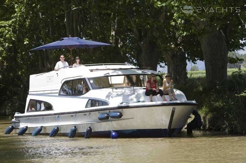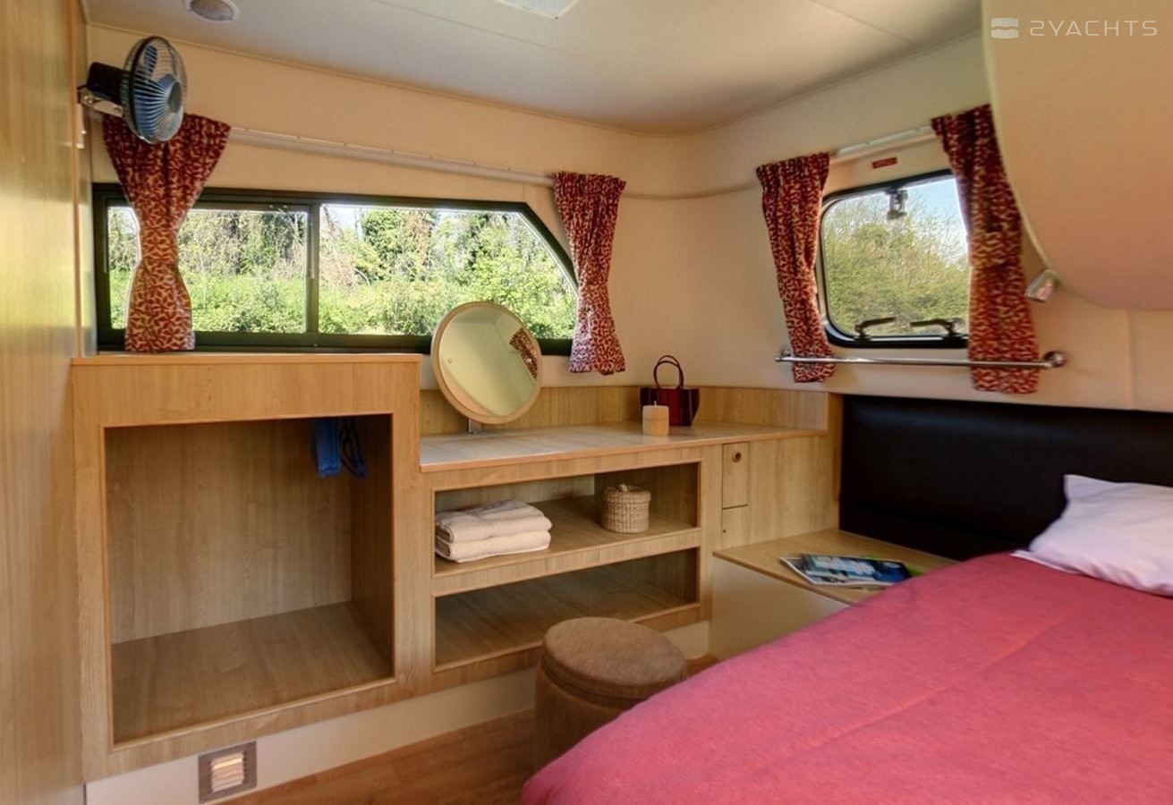 The Le Boat Royal Mystique A CPF Fontenoy 2 houseboat was built in 2008, and and renovated in 2021. It is docked in Le Boat Fontenoy-le-Château, France.