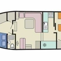 The living area of this houseboat consists of 2 cabins and accommodates 4 people. A shower is at the guests' disposal and there are 2 toilets on board.