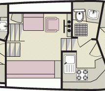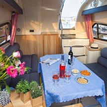 The living area of this houseboat consists of 2 cabins and accommodates 4 people. A shower is at the guests' disposal and there are 2 toilets on board.