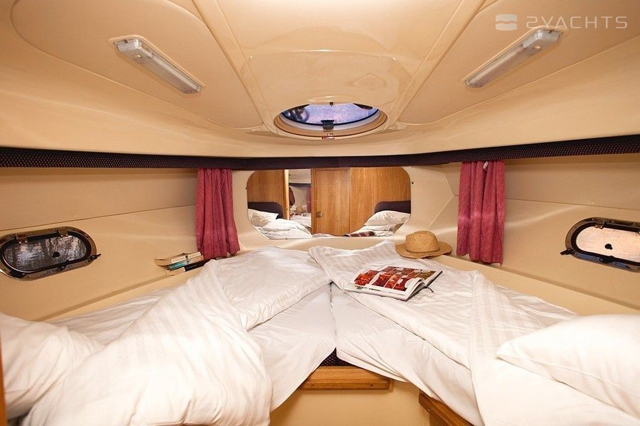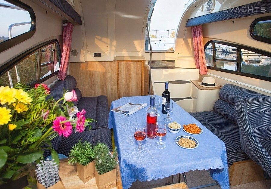 This houseboat is equipped with bathing platform. In chilly weather, guests will benefit from heating. an audio system, flybridge and inside speakers are also available.