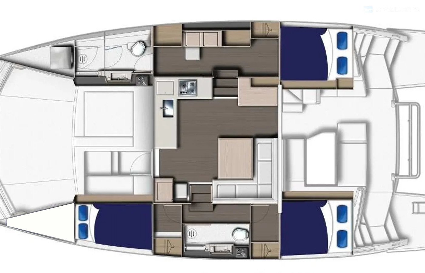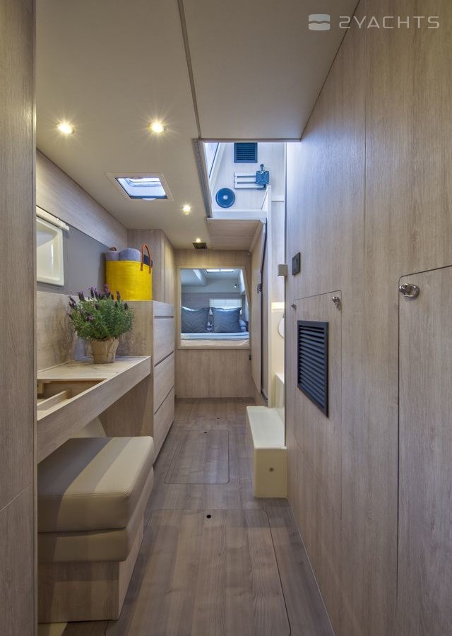 Moorings 17 can accommodate up to 8 people in 3 double cabins and a saloon with 2 extra beds. Pillows and blankets are included in the price.