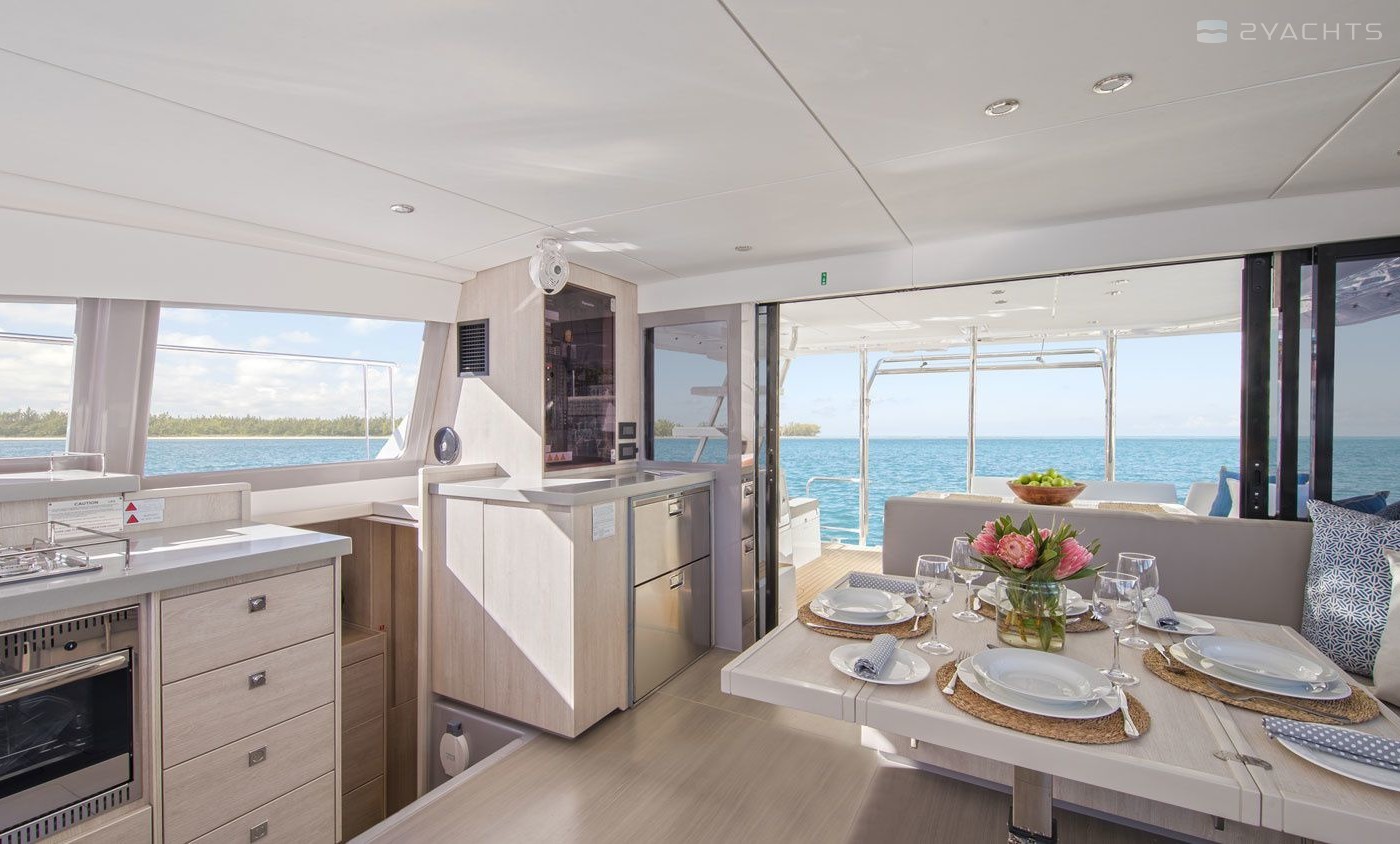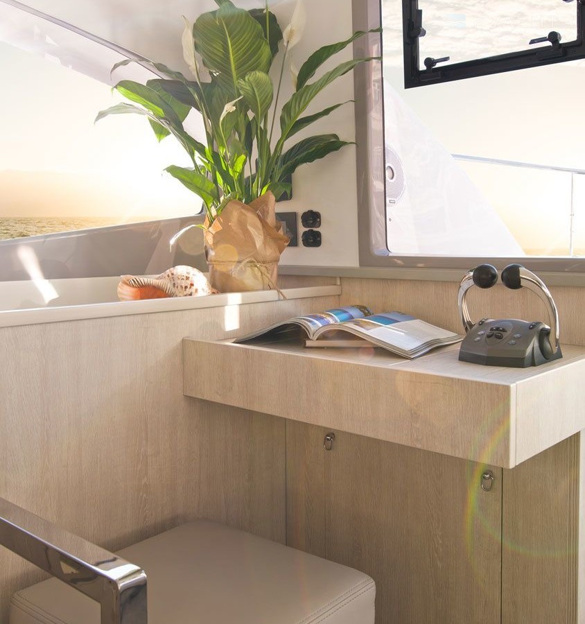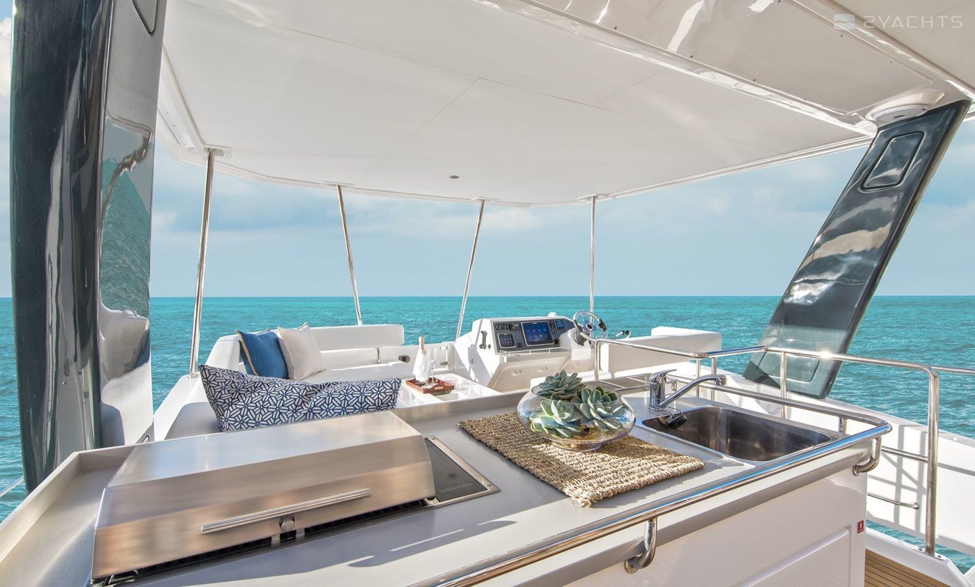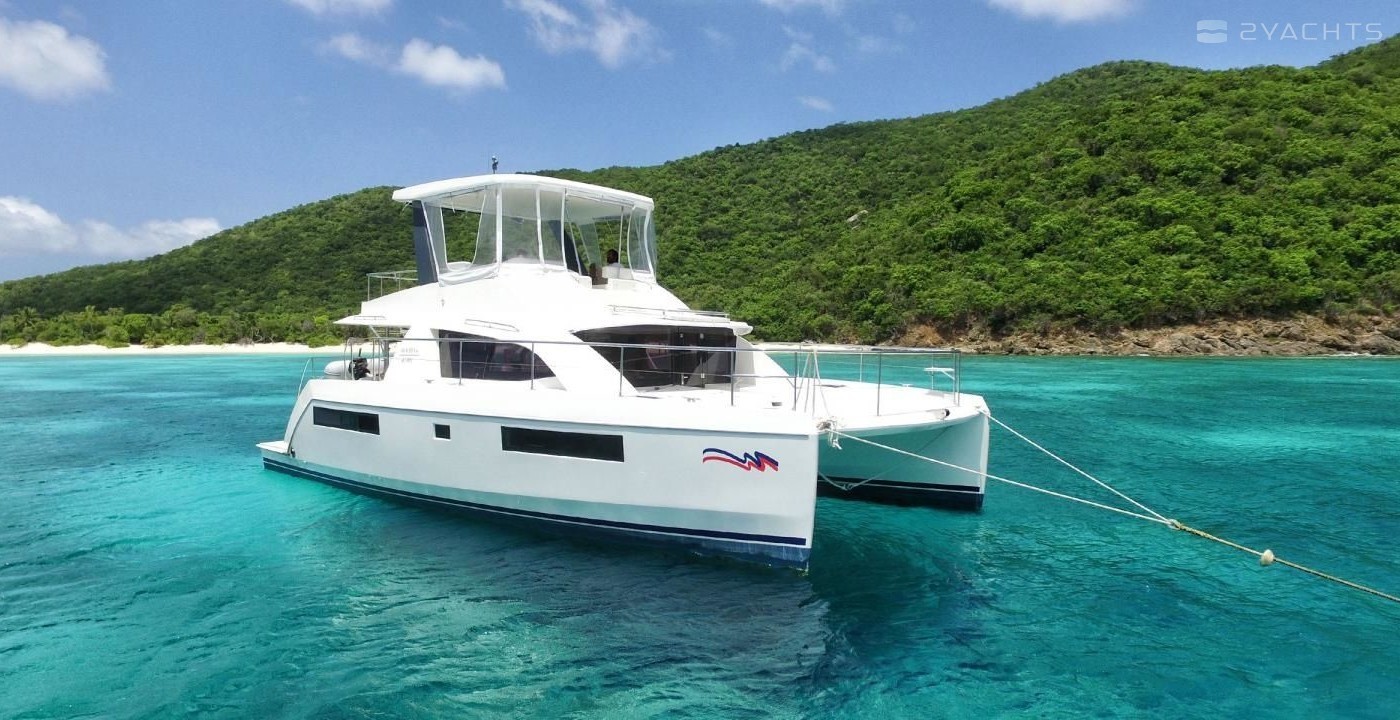 This power catamaran is operated by the charter company The Moorings.