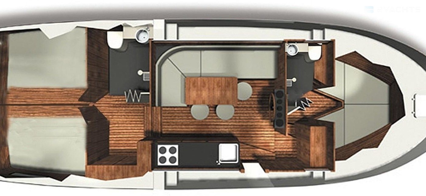 This houseboat is equipped with salon gps plotter and bow thruster. In chilly weather, guests will benefit from heating. flybridge are also available.