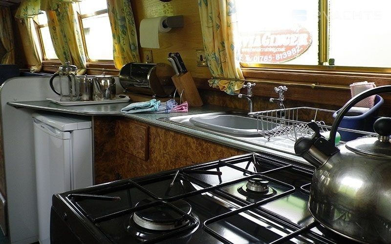 A well-equipped galley with oven, cooker, sink and kitchen utensils is prepared to facilitate cooking. There is also a freezer on board.