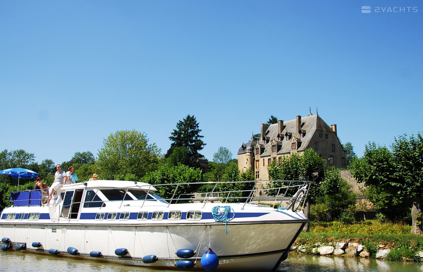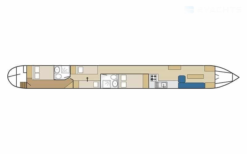The living area of this houseboat consists of 3 cabins and accommodates 6 people. A shower is at the guests' disposal and there are 2 toilets on board.
