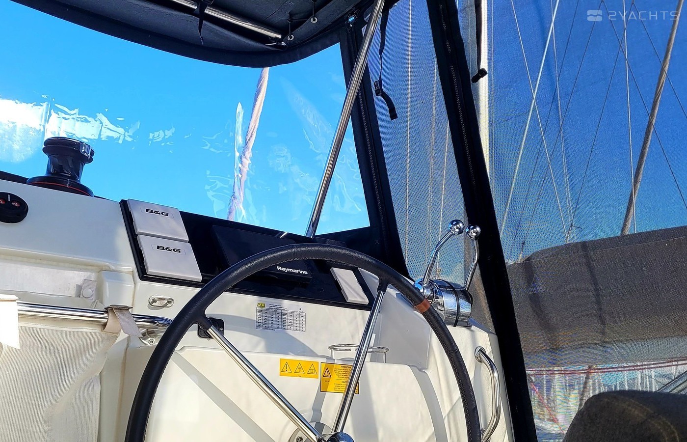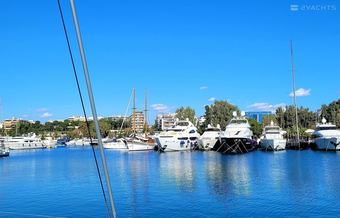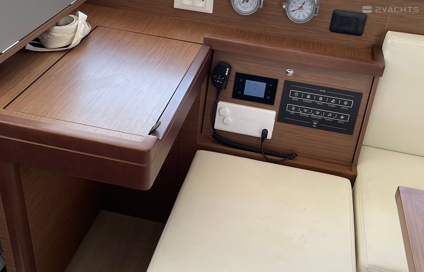 Boat equipment features classical mainsail, electric winches, solar panels, generator, bimini and outside gps plotter. It also boasts a heating, air conditioning, an audio system, outside speakers and inside speakers. The fully-equipped galley includes a freezer, oven, cooker, sink and kitchen utensils.