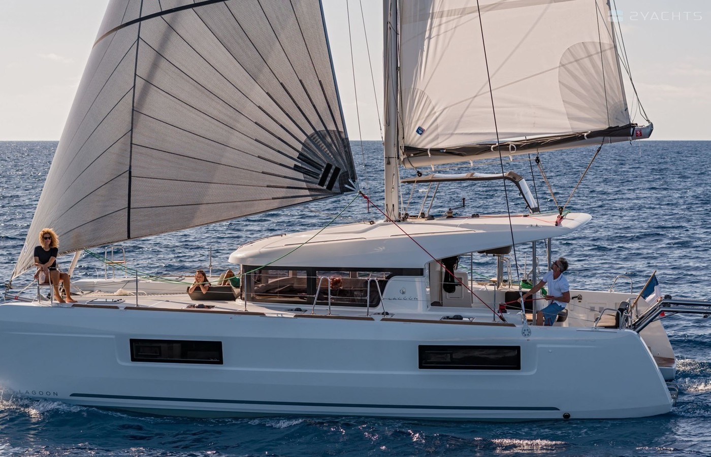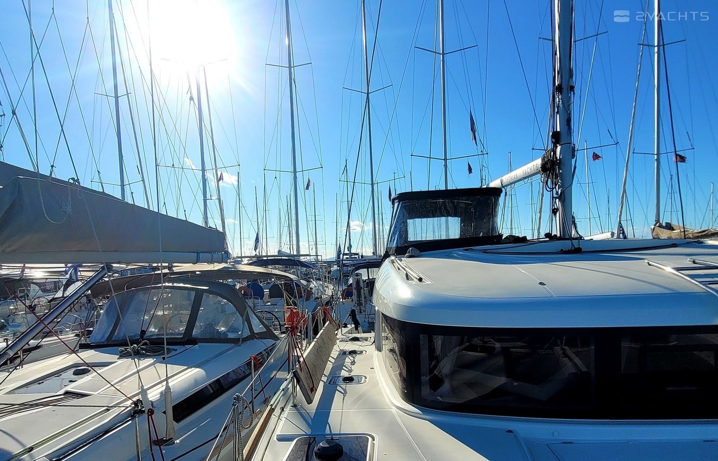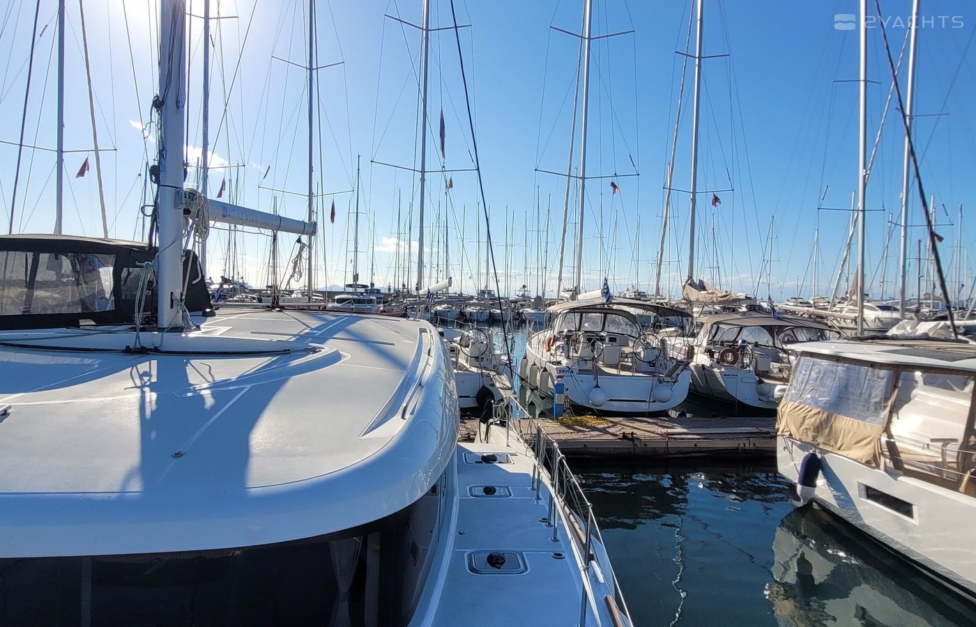 5-cabin catamaran Lagoon 40 - Mary Grace was built in 2021, and it is docked in Marina Rhodes, Greece.