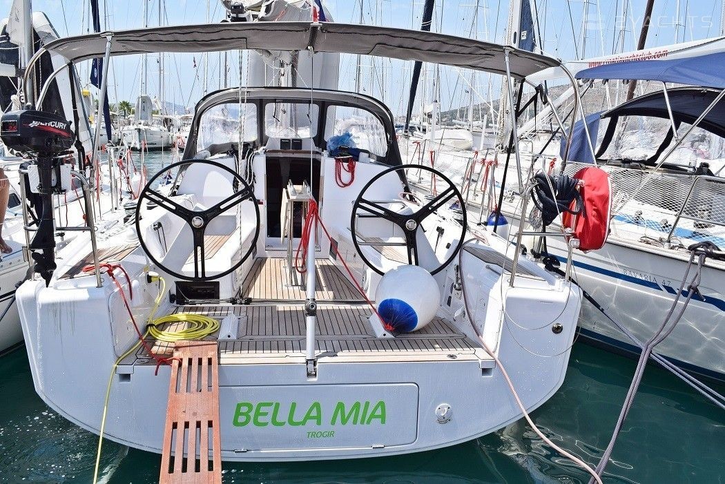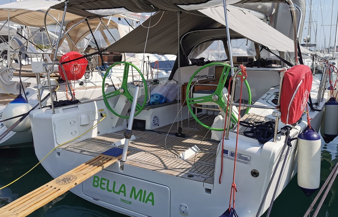 3-cabin sailing yacht Elan E4 - Bella Mia was built in 2017, and it is docked in ACI Marina Pomer, Croatia.
