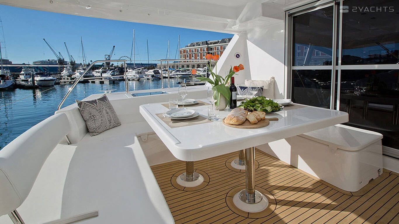 This power catamaran is operated by the charter company The Moorings.