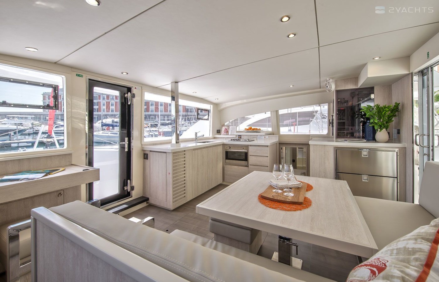 This catamaran is operated by the charter company The Moorings.